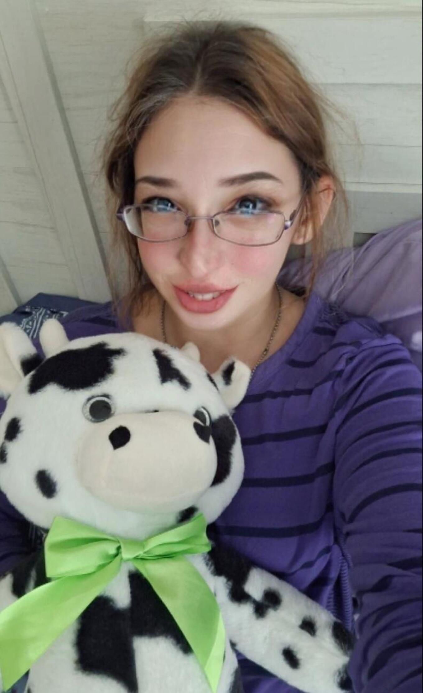 Just a bed head selfie with a very cute cow that I named Moo.