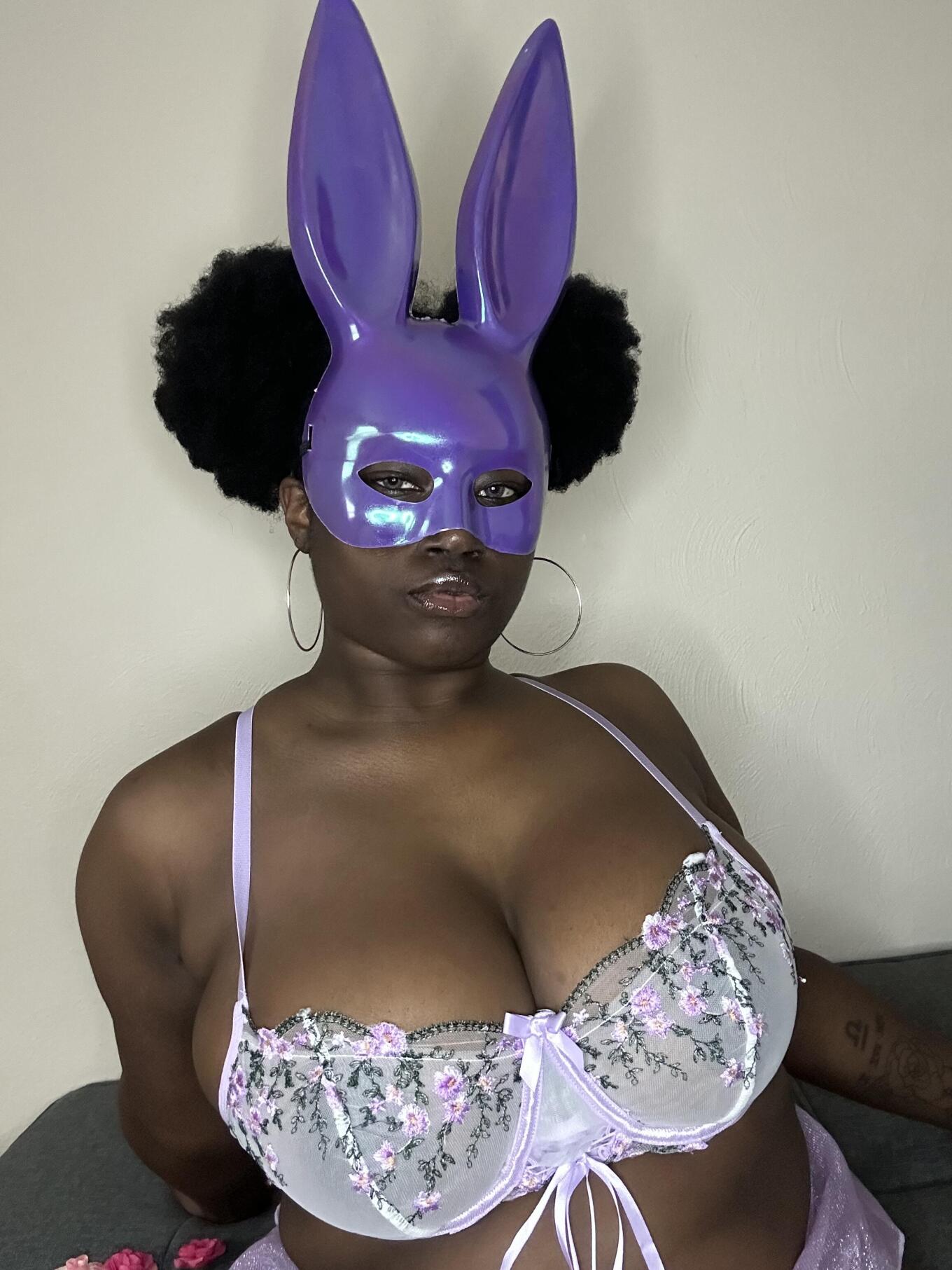 Ah, my loyal subject, I'm Goddess Bunni, your ebony-skinned, thick, and masked Goddess 😒. Welcome to my lair, where you'll find a treasure trove of explicit content tailored to your deepest desires 🤑.