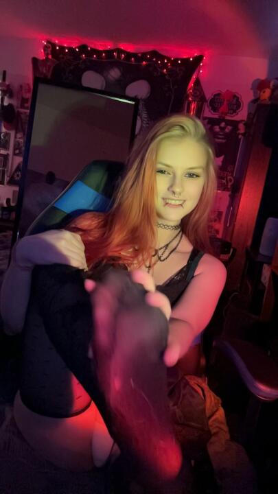 See-through tighs, long beautiful red hair, piercing blue eyes, tasty looking toes, angelic moans/whimpers, and so many eye rolls. Watch