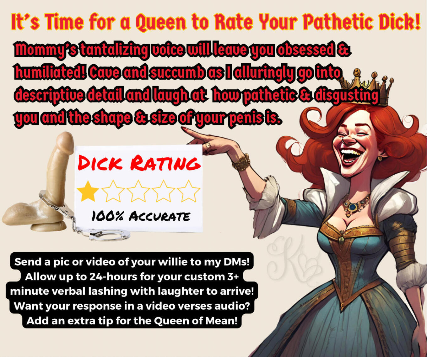 ... Read moreMommy’s tantalizing voice will leave you obsessed & humiliated! Cave and succumb as I alluringly go into descriptive detail and laugh at
