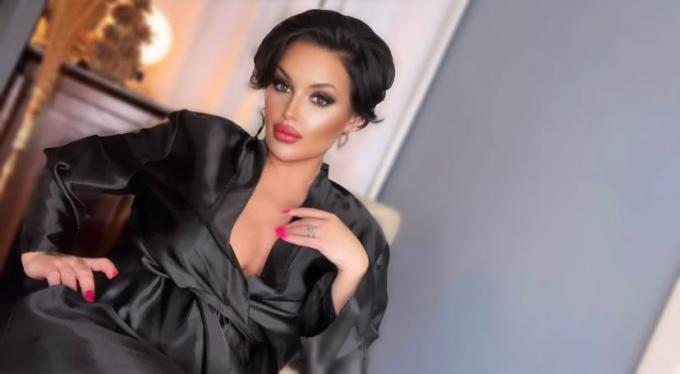 Black satin robe, crossed legs and freshly manicured long nails in hot pink. This hot Momma is about to hit town and there is no husband