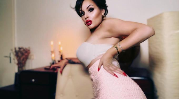 Gorgeous red stiletto nails teaming up with full lips accompanied by a satin strapless bra.. ‘say no more… I am yours’ you must be thinking