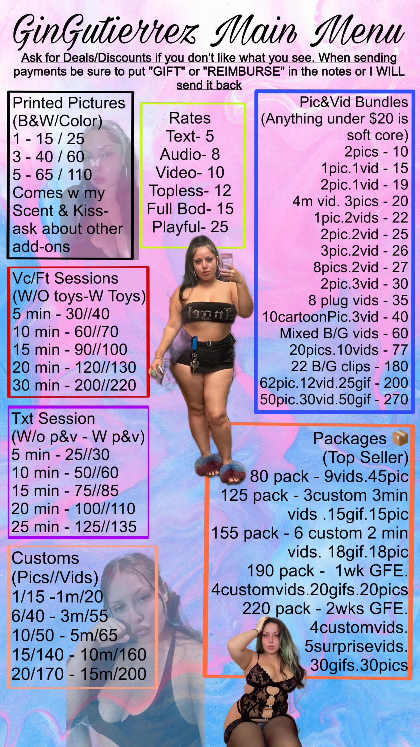 24/7 Access to Me, Livestreams, Custom Pictures and Videos, PhoneCalls, Texting Services, Empathetic Listening Services, Adult Content, Bundles, Kinks, Fetishes, Games, Rates and Packages around the clock!