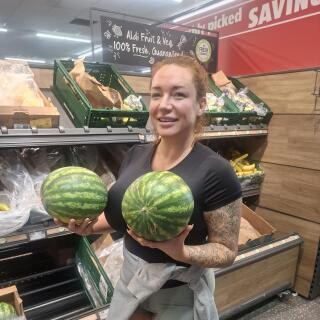 Curvy, red-haired, tattooed trophy-wife energy with a very naughty side.