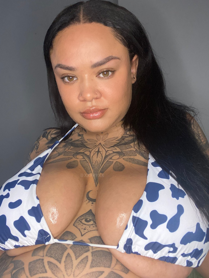 Mixed Race, Curvy, Tatted British Financial Dominatrix with a chest that lightens wallets.