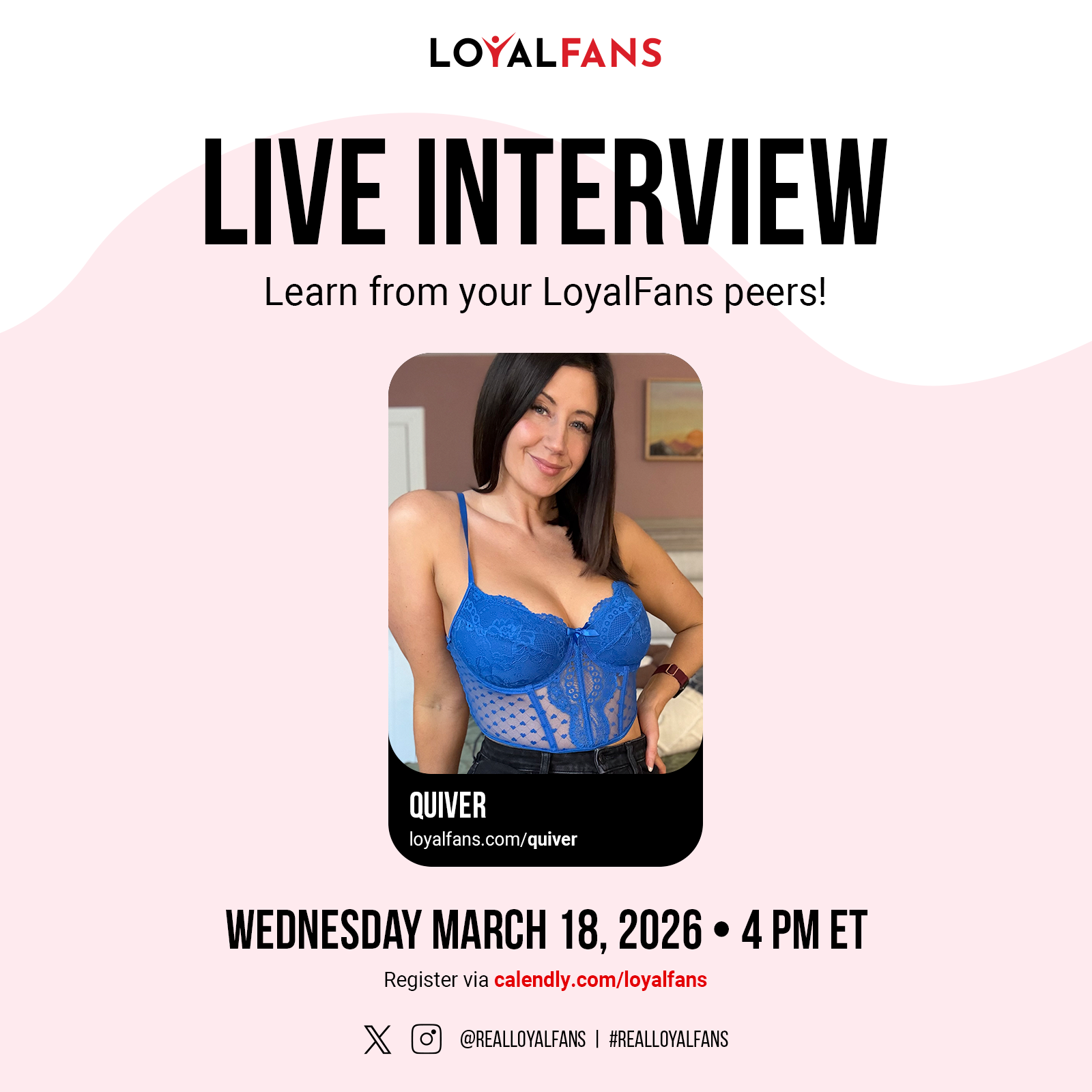 Creators! Join us on the 18th at 4 pm ET for an exclusive interview with our Featured Creator for March, Quiver 🩵 For #realloyalfans creators only, you’ll be able to ask questions in the chat…