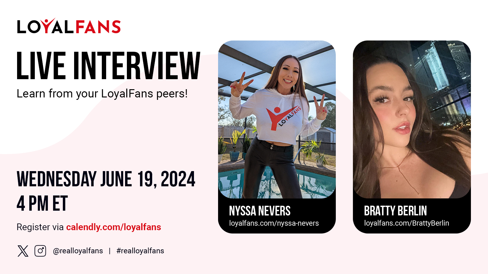 This event is open to current, active LoyalFans creators only. Creators may go to calendly.com/loyalfans to sign up.