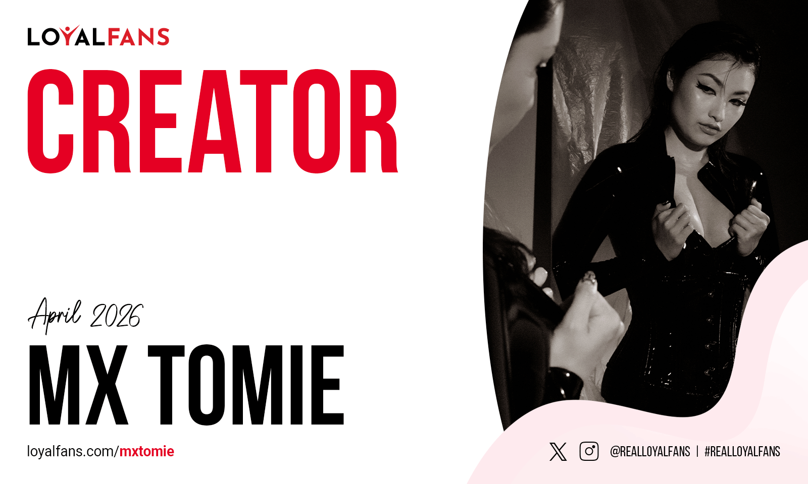 Cyberspace (April 1, 2026) – LoyalFans.com is pleased to announce that Mx Tomie has been named Featured Creator for April 2026. A dominatrix through and through in both the physical and digital worlds, Mx Tomie is an integral part of what makes #realloyalfans great!