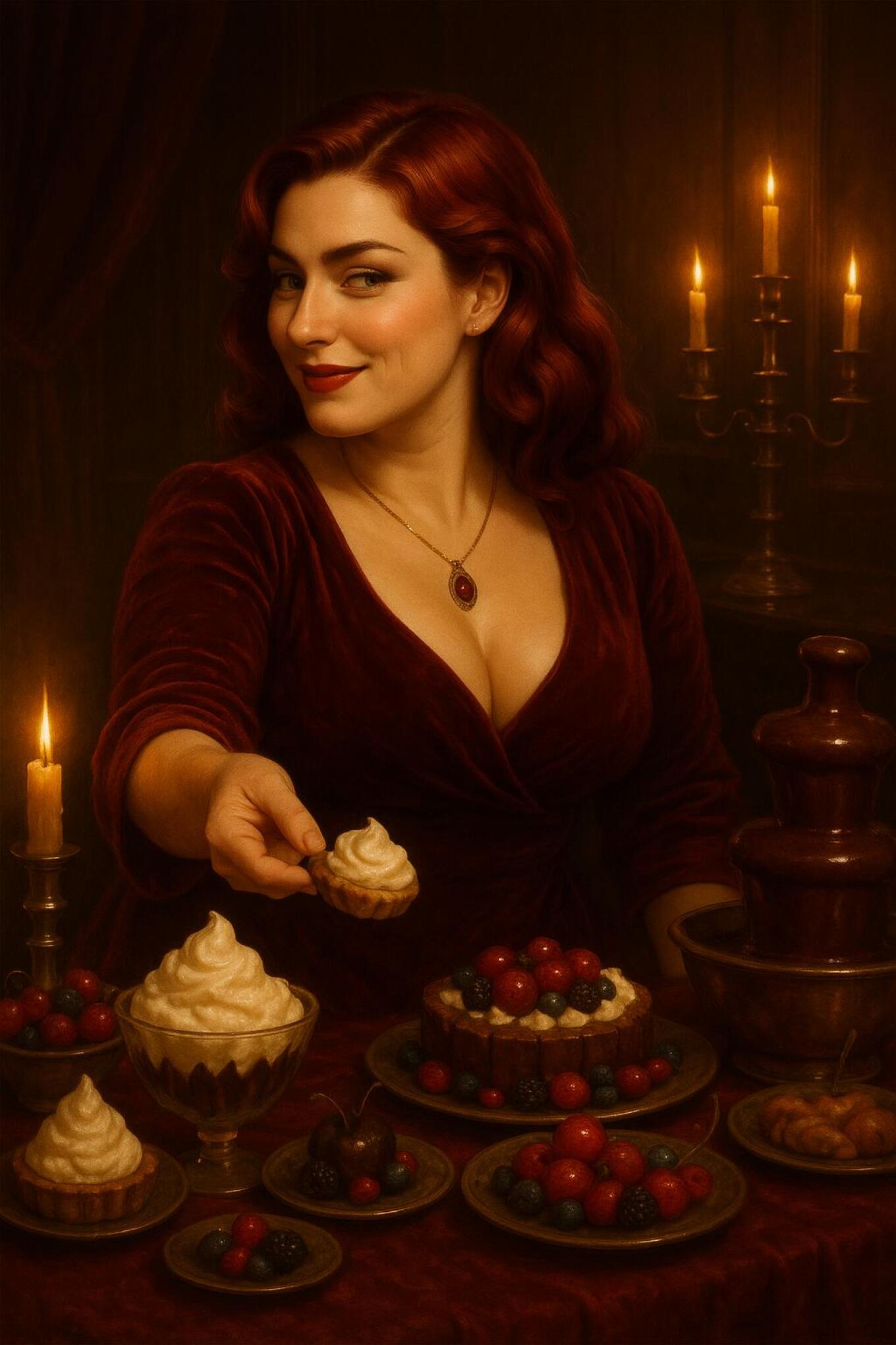 Velvet temptress. Stern tease. Indulgence made flesh.
