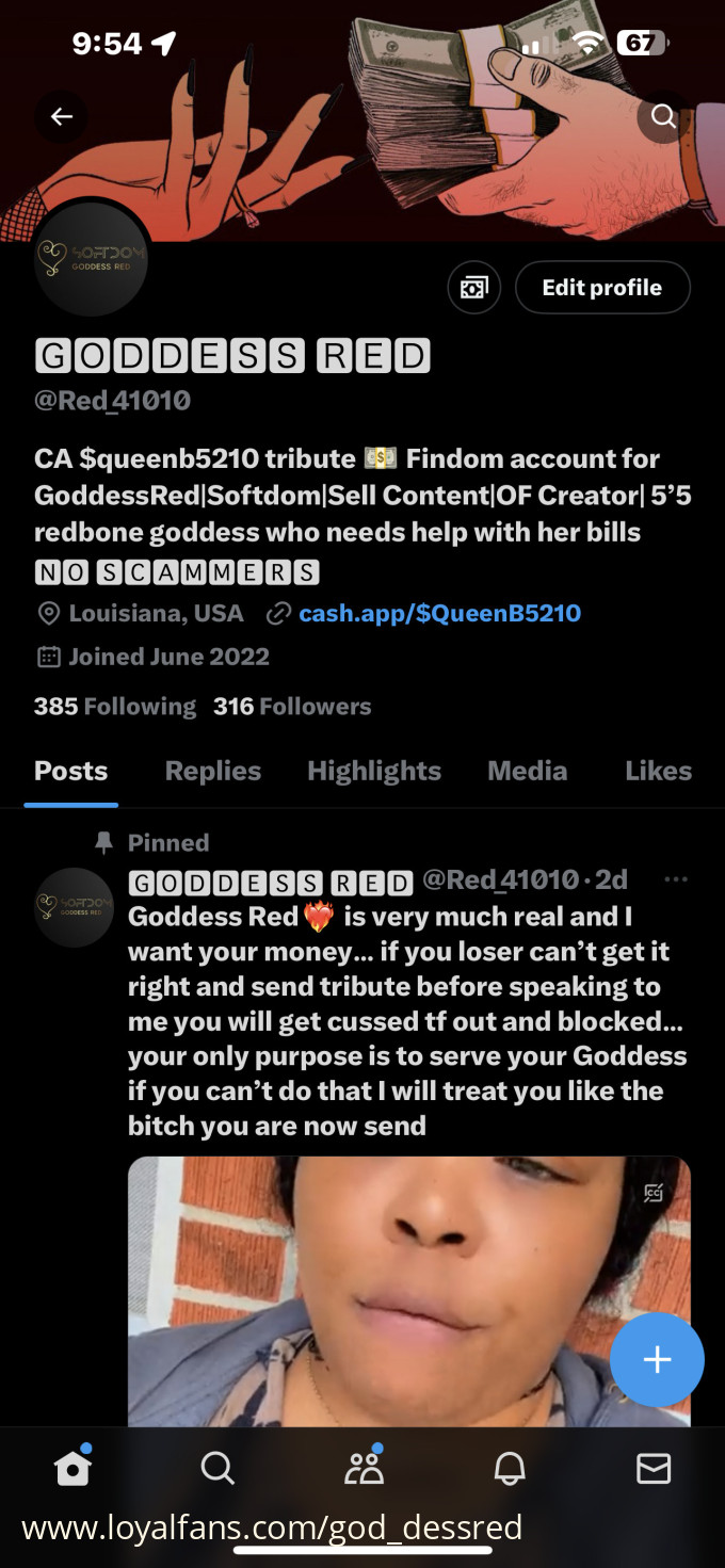 CA $queenb5210 tribute π΅ Findom account for GoddessRed|Softdom|Sell Content|OF Creator| 5β5 redbone goddess who needs help with her bills π ½π Ύ ππ ²π °π Όπ Όπ ΄ππ