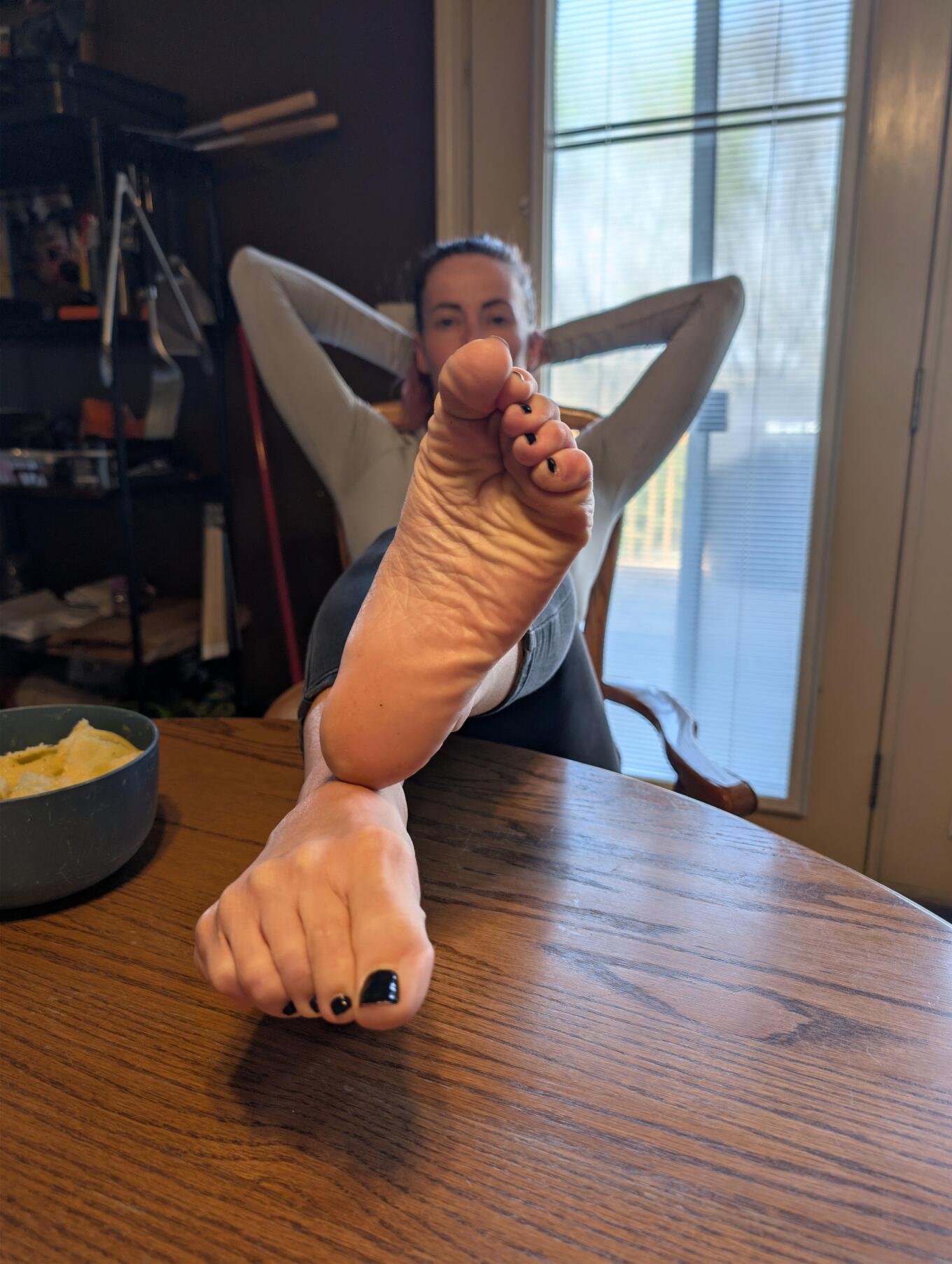 my feet are presented on the table in front of you.