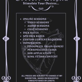 🖤 Goddess Worship🖤Humiliation/ Degradation🖤Financial Domination🖤Submissive Training🖤JOI🖤 Body Worship (Breast, Legs, etc.)🖤SPH🖤Tease and Denial🖤Orgasm Control🖤Feminization🖤Foot/Boot Worship🖤 Mean Domme GFE🖤Gooning… and more