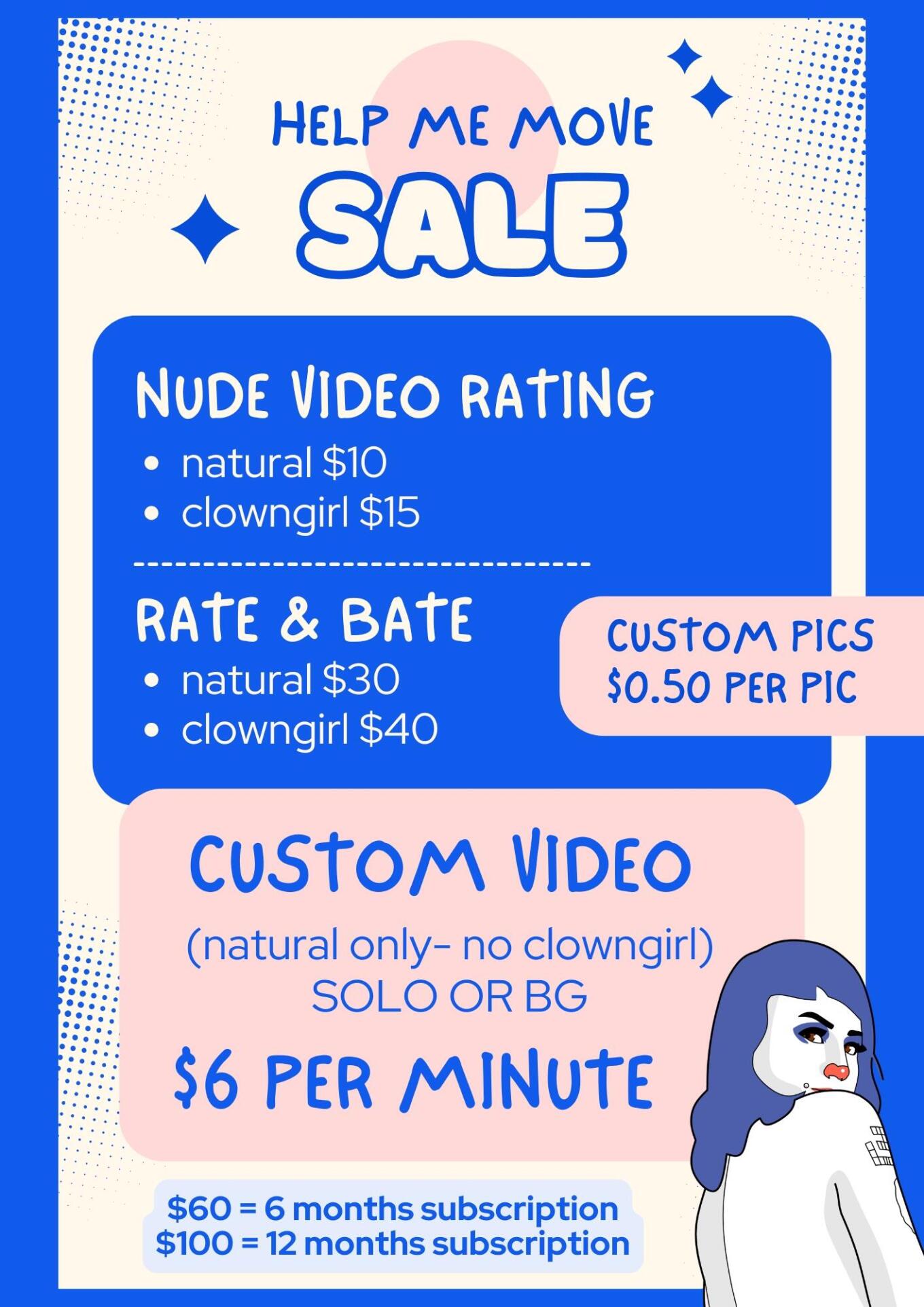 I can offer keyholding, tasks, edging, cuckholding, spin the wheel, drains, sph, humiliation, soft femdom, harsh femdom, ratings, custom videos, custom audios, custom photos and more. If you are looking for a specific service, tell me, if you are looking to have some kind of ongoing domme/sub relationship with me, tell me .