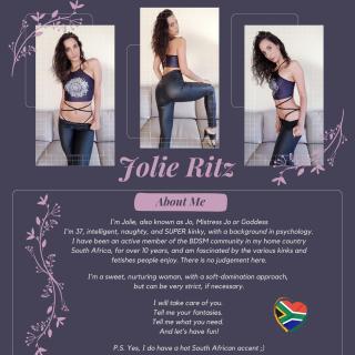 I'm Jolie, also known as Jo, Mistress Jo or Goddess