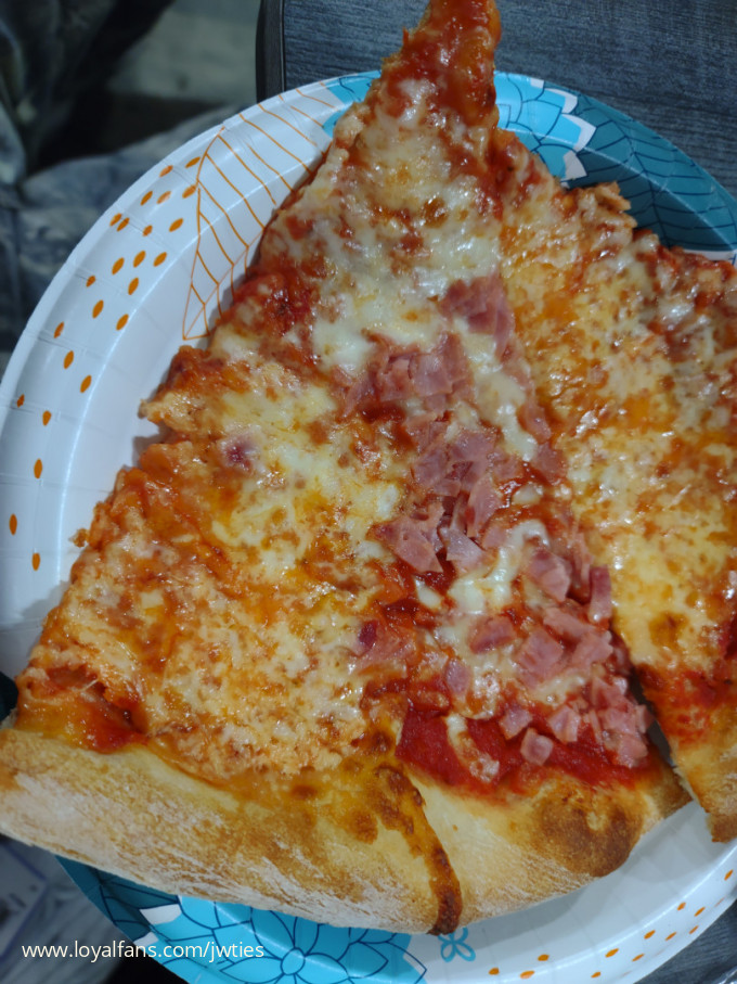 Generally when Alice and I are on cam it ends up being pizza night because neither of us want to cook. The other night I ordered a half ham