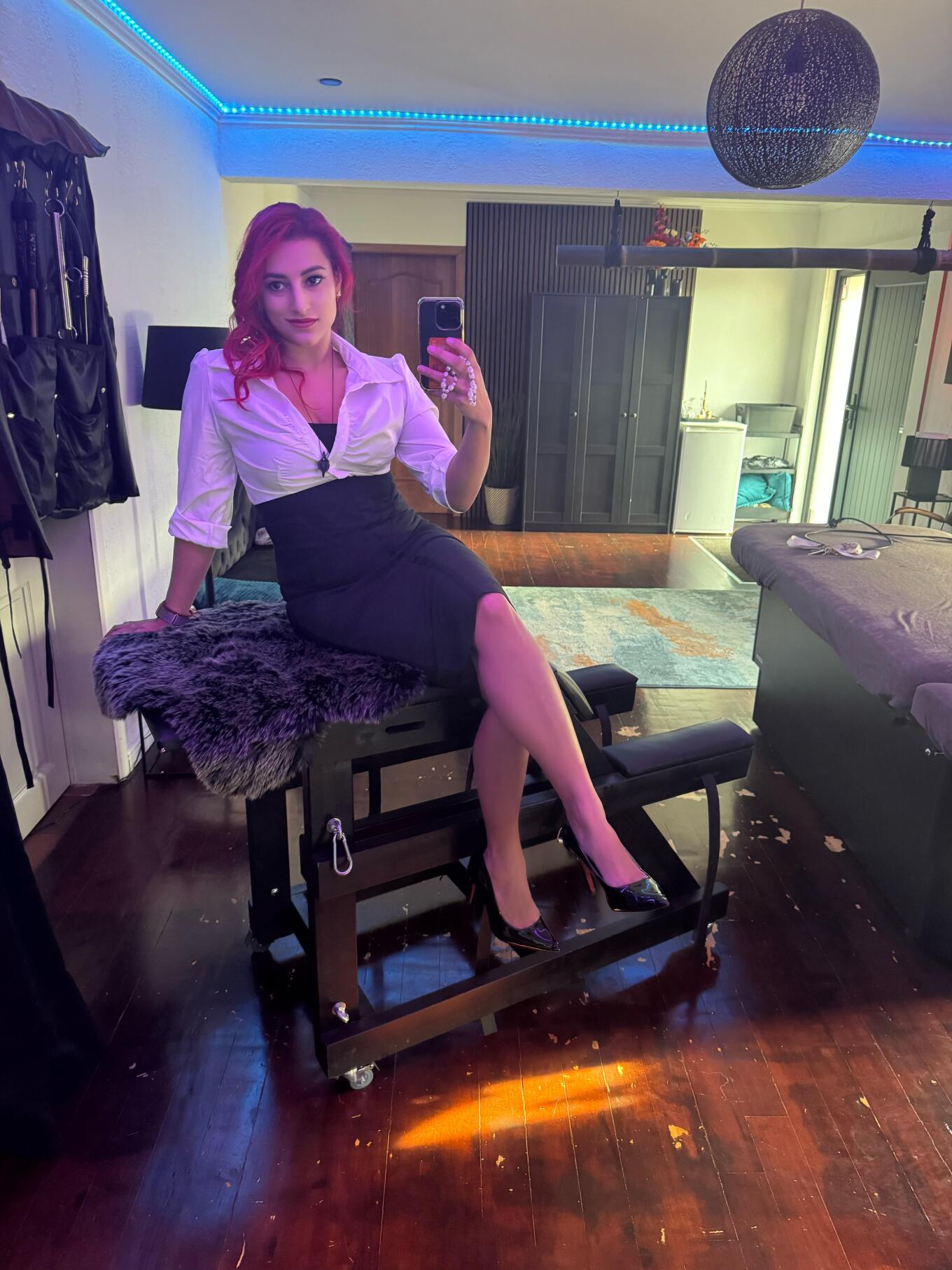 I host My sessions and record My videos and pictures in My private, fully equipped “SOUNDPROOF” 😈 dungeon, a discreet and safe space where My subs can let go completely and totally be themselves under My command!