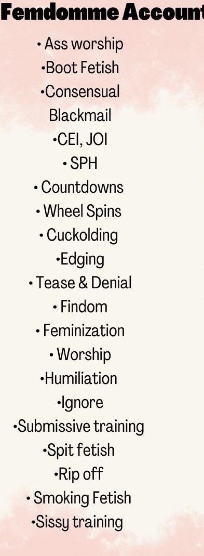 Check Pinned Post for a list of Domme services.