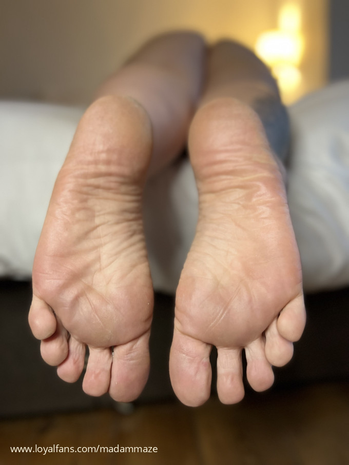 Shiny, creased soles and pudgy toes