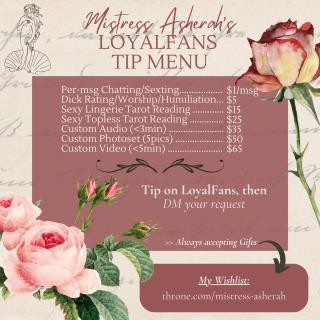 >> TIP MENU (DM preferences/requests/tarot reading questions after tipping)