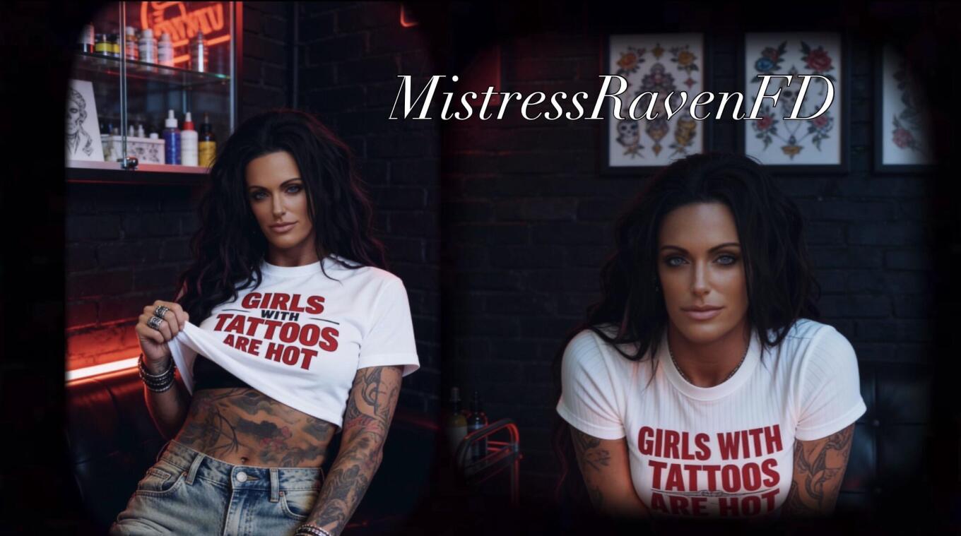 I, Mistress Raven, am a striking figure. My presence commands attention. With a cascade of long, curly black hair framing My Dominating face, I exude an air of authority and mystique. My body is a canvas of intricate tattoos. My eyes, sharp and piercing blue, that will cut deep into your soul.