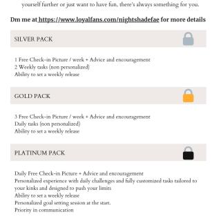 ✨**Honorifics:** Goddess (more honorifics such as Mistress, Mommy, Daddy, Sir…should be discussed and earned)