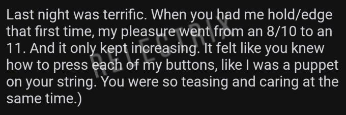I love chatting and doing sessions. I'm available for text-based messaging, controlling your toys, and custom requests.