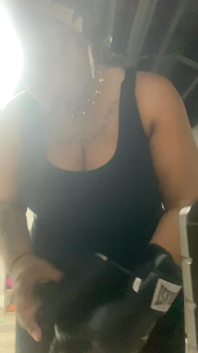 sexy ebony godess desire ! sparring with gloves !