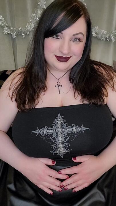 ultra busty BBW. sweet, sultry, and kinda spooky, girl next door.