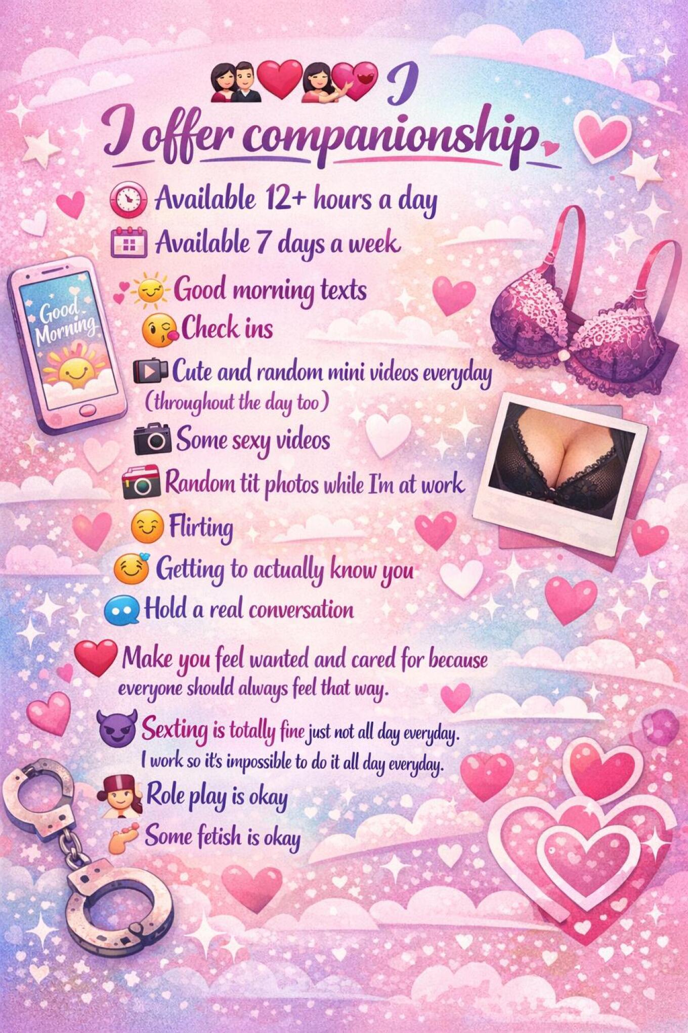 Ever wondered what is offered in GFE?? Well look no further because your future girlfriend just posted all of the things I do for you each