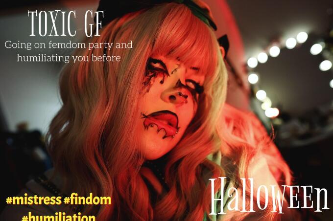 Your gf going on Halloween femdom paryt and humiliating you. So