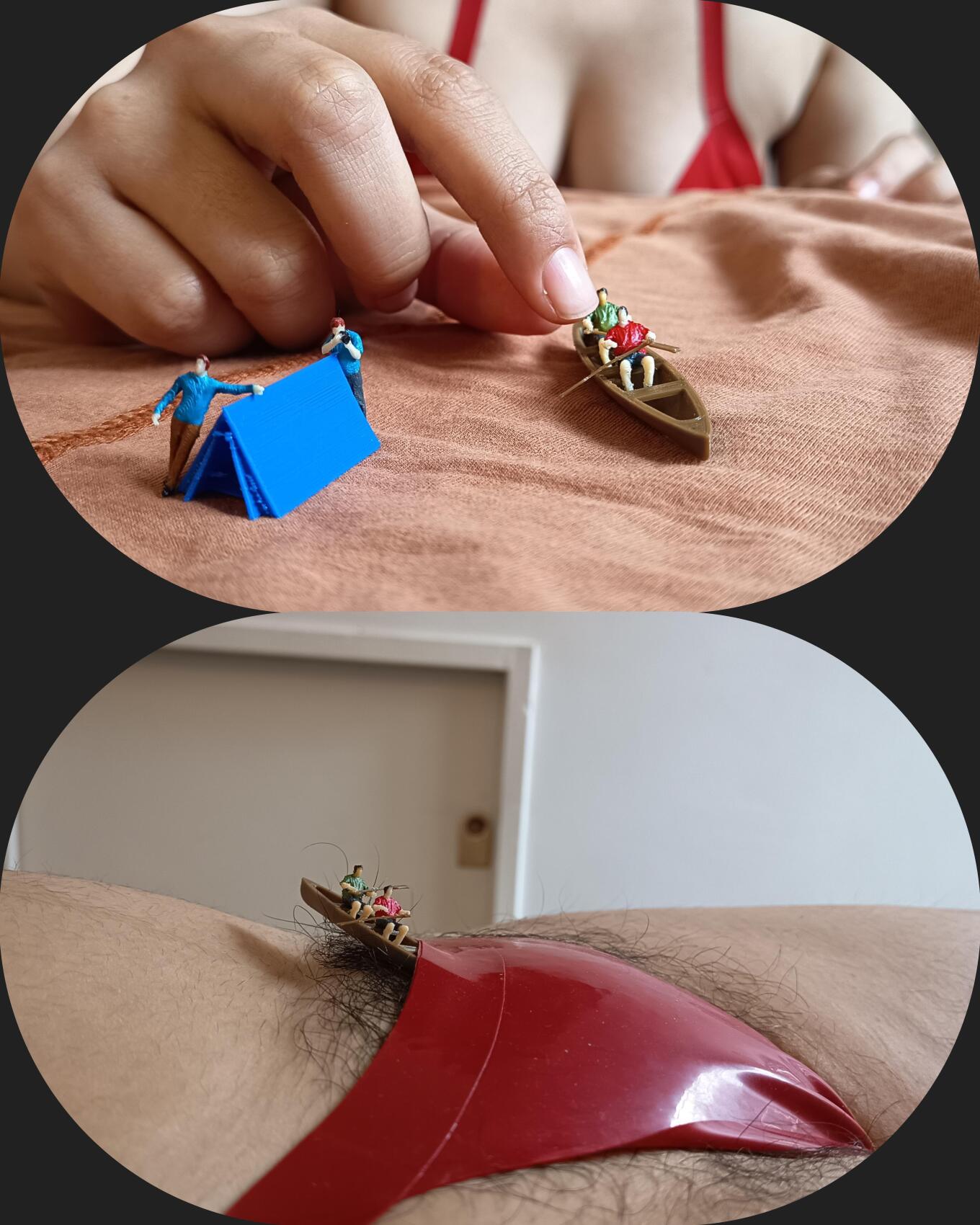 Imagine yourself as a miniature, completely lost between my towering breasts. My giantess body surrounds you, pressing closer, reminding