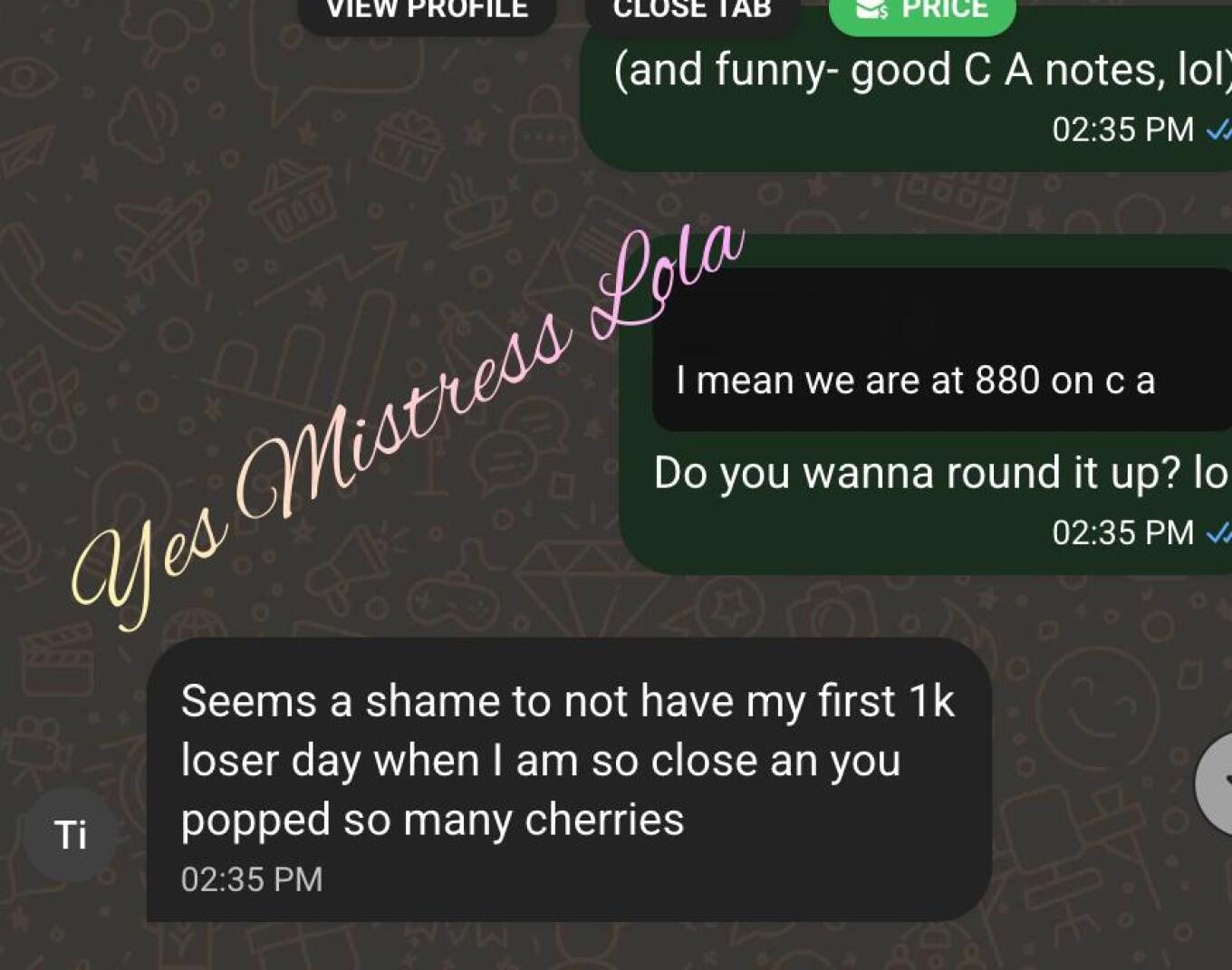 Your new vice... and your new mantra: "Yes, Mistress Lola." $40 Tribute to approach / me to read your DM.